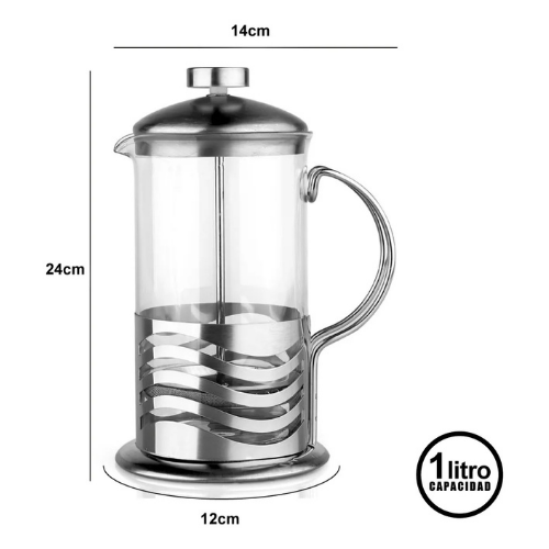 ☕ Cafetera Émbolo 1 Litro – Metal & Vidrio Borosilicato