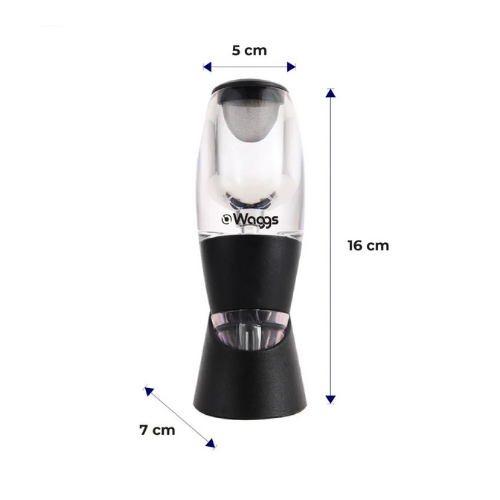 Elegancia y funcionalidad en una sola pieza ✨. El decantador aireador WAGGS oxigena tu vino al instante, realzando sus aromas y sabores para que cada copa sea una experiencia sensorial única. Ideal para quienes disfrutan del buen vino y buscan perfección en cada detalle.